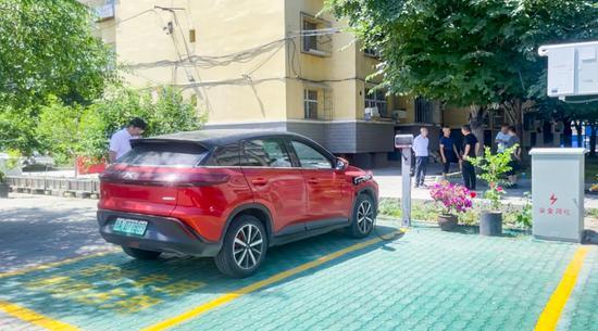 在(zai)(zai)(zai)高新(xin)區(qu)(新(xin)市(shi)區(qu))政府家屬院(yuan)停車(che)(che)場,兩臺(tai)電(dian)(dian)(dian)動汽車(che)(che)充(chong)(chong)(chong)電(dian)(dian)(dian)樁(zhuang)(zhuang)設置在(zai)(zai)(zai)充(chong)(chong)(chong)電(dian)(dian)(dian)專用(yong)車(che)(che)位,一(yi)位新(xin)能源(yuan)車(che)(che)主(zhu)正在(zai)(zai)(zai)給車(che)(che)充(chong)(chong)(chong)電(dian)(dian)(dian)。居民(min)李超說(shuo),小(xiao)區(qu)有了充(chong)(chong)(chong)電(dian)(dian)(dian)樁(zhuang)(zhuang)了之后,新(xin)能源(yuan)車(che)(che)輛(liang)車(che)(che)主(zhu)就(jiu)不(bu)(bu)用(yong)擔(dan)心四(si)處找地(di)方充(chong)(chong)(chong)電(dian)(dian)(dian)了。回(hui)家之后在(zai)(zai)(zai)小(xiao)區(qu)就(jiu)可(ke)以(yi)充(chong)(chong)(chong),也不(bu)(bu)耽誤第二天上班,特別方便。