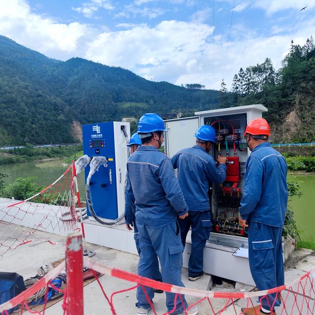 工作人員(yuan)對充(chong)電樁進行試(shi)用測試(shi)。