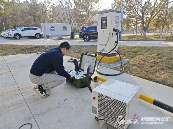 在(zai)昌吉某企業生(sheng)活區,自治區計量(liang)院工作人(ren)員王曉(xiao)文正在(zai)檢測新(xin)能源車充電(dian)樁。