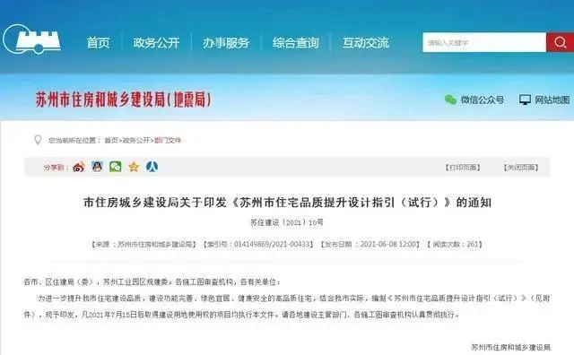 近日,蘇州市住房和城鄉建設局印發《蘇州市住宅品質提升設計指引(試行)》,凡2021年7月15日后取得建設用地使用權的項目均執行本文件。
