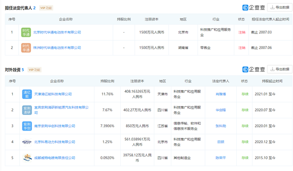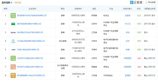 頗為(wei)意外的(de)是,有人挖出了歐(ou)陽院士(shi)的(de)更多(duo)背景資(zi)料。從企查查信息(xi)來(lai)看(kan),歐(ou)陽明高院士(shi)名下與(yu)13家企業有關聯,基(ji)本上(shang)都是電動(dong)車領域的(de)公司(si),其中(zhong)擔(dan)任(ren)法人代表(biao)的(de)2家公司(si)已(yi)經注銷。