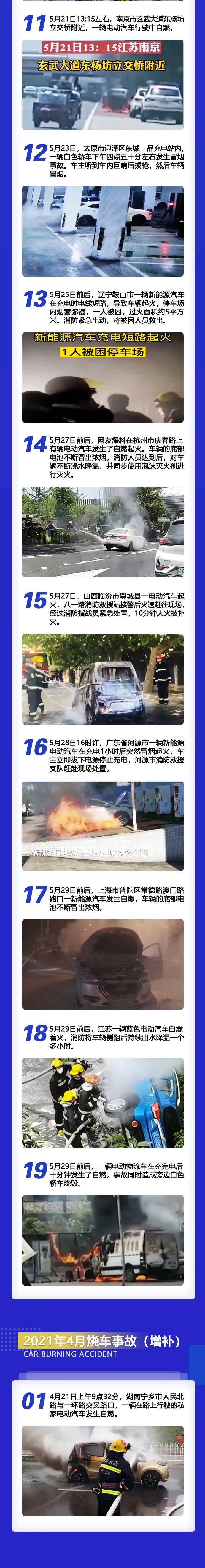 今年以來各類新能源汽車燃燒(shao)事故(gu)已經不斷(duan)見(jian)著(zhu)報道(dao)。根據相關報道(dao),來一(yi)個相關燒(shao)車事件匯總,如圖(tu):