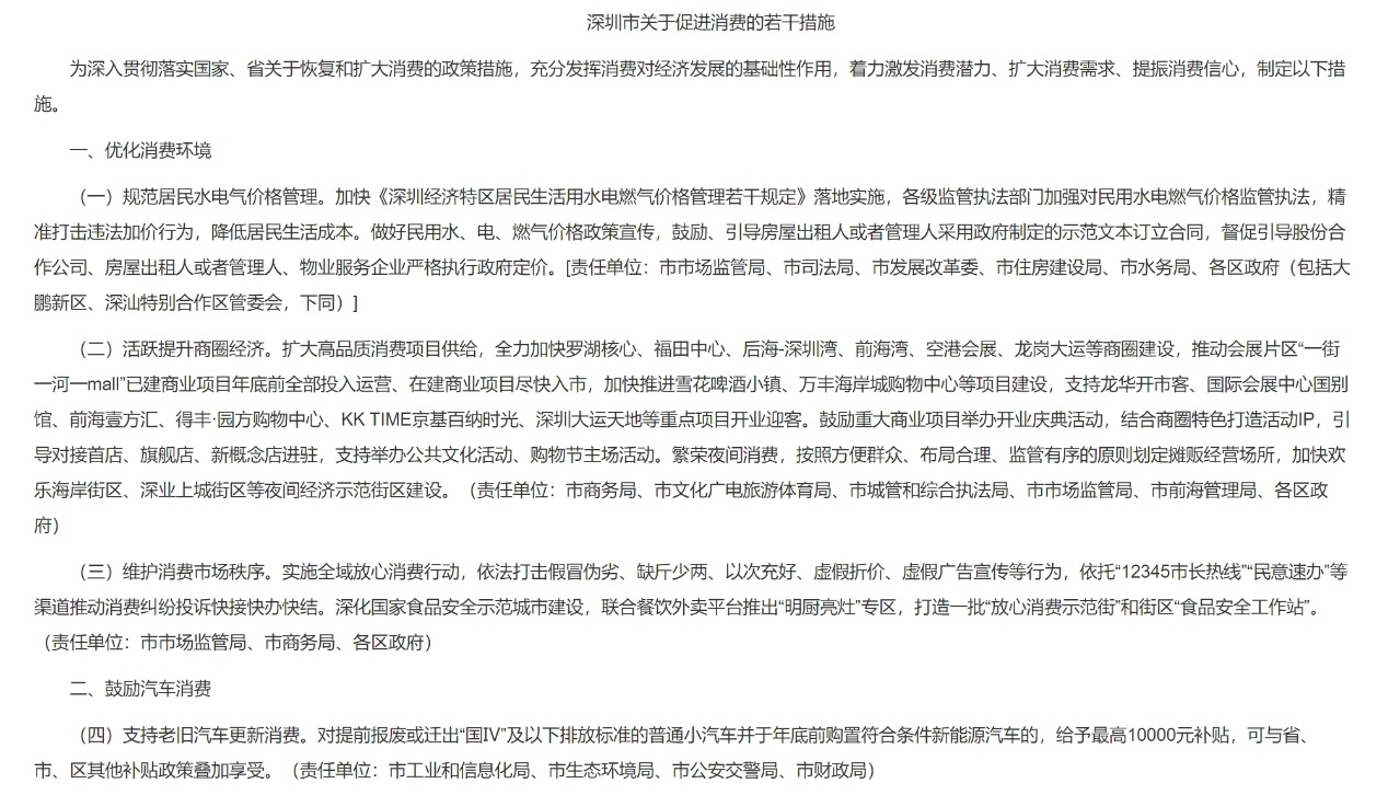近日,深(shen)圳市(shi)發展改(gai)革(ge)委印(yin)發《深(shen)圳市(shi)關于促進消費的若(ruo)干措施》。其中提到(dao)支持老舊汽(qi)車更新消費和(he)加大新能源汽(qi)車推廣力度,加快建設便捷高(gao)效的充電(dian)網絡(luo),到(dao)2024年底累計建成(cheng)充電(dian)樁45萬個、超級快充站175座。