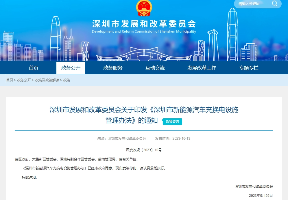 《深圳市新能源汽車充(chong)換電設施管(guan)理辦法》