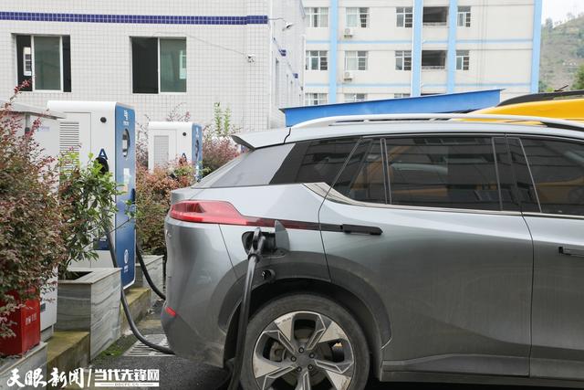 隨著電動汽車普及率的不斷提高,桐梓縣不僅僅聚焦城區充電樁,更是提前布局鄉村充電樁規劃。位于該縣楚米鎮的充電站內,充電樁24小時全天候為電動汽車提供充電服務。