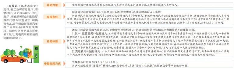 近日,省(sheng)工(gong)業和信息化廳、省(sheng)財政廳、省(sheng)交通運輸廳、省(sheng)公安廳、省(sheng)住房和城(cheng)鄉(xiang)建設廳等部門聯合印發通知,明(ming)確我省(sheng)2023年(nian)鼓勵新能源(yuan)汽車推廣(guang)應用補貼(tie)(tie)申(shen)報有關事(shi)項(xiang)。運營(ying)服務補貼(tie)(tie)最(zui)高可(ke)(ke)申(shen)領3萬元,充電費(fei)用補貼(tie)(tie)最(zui)高可(ke)(ke)申(shen)領2000元。