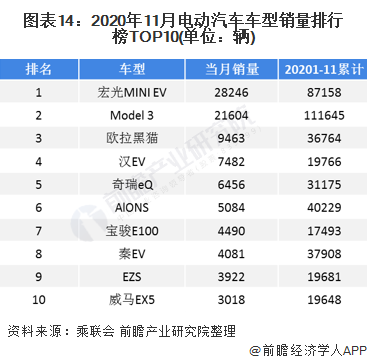 值(zhi)得注意的是,2020年中(zhong)(zhong)國(guo)電(dian)動汽車(che)(che)品牌快速發展(zhan),其中(zhong)(zhong)比亞迪(di)在(zai)高端(duan)電(dian)動汽車(che)(che)市(shi)場獲得較好的口碑,上通五宏(hong)光自上市(shi)以來(lai)銷(xiao)量(liang)(liang)(liang)不斷攀升,在(zai)經濟車(che)(che)市(shi)場占據了(le)主導地(di)位。根據乘(cheng)聯會發布的11月(yue)銷(xiao)量(liang)(liang)(liang)數據顯示, 2020年11月(yue)新能源(yuan)汽車(che)(che)銷(xiao)量(liang)(liang)(liang)-EV銷(xiao)量(liang)(liang)(liang)排行榜中(zhong)(zhong),宏(hong)光MINI EV銷(xiao)量(liang)(liang)(liang)為28246輛, 位居第一。