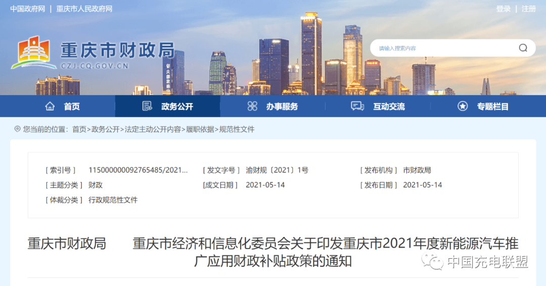 政(zheng)策丨重慶(qing)市印發2021年度(du)新能源汽車推廣應用財政(zheng)補貼政(zheng)策的(de)通知(zhi)