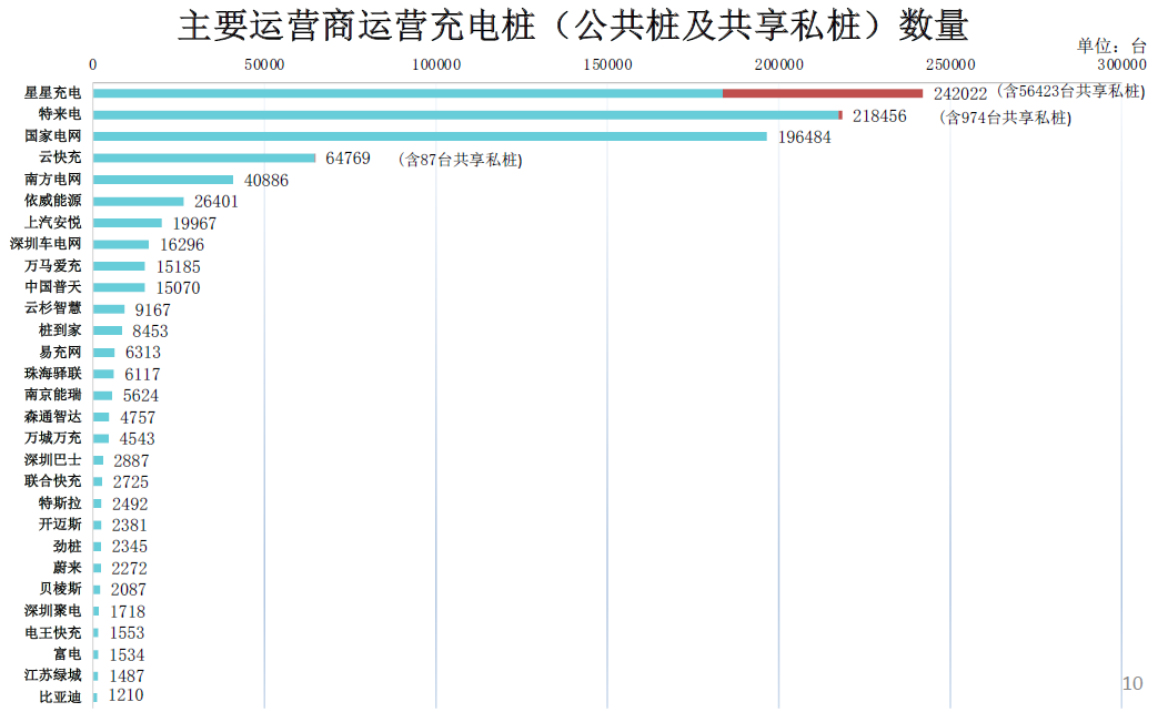 專用充電樁:TOP5運營商分別為國家電網、特來電、星星充電、上汽安悅、深圳車電網,占比達92.8%。