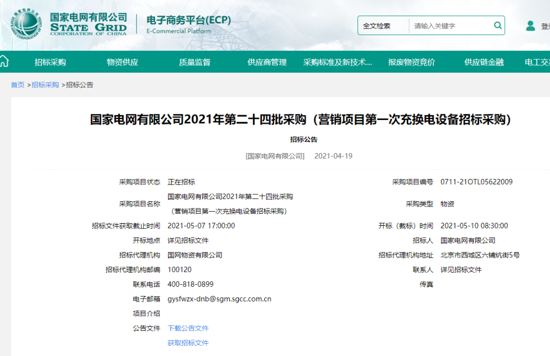國家電網有限公司2021年(nian)第二十四批采購(營銷項(xiang)目第一次(ci)充換電設備招(zhao)標采購)