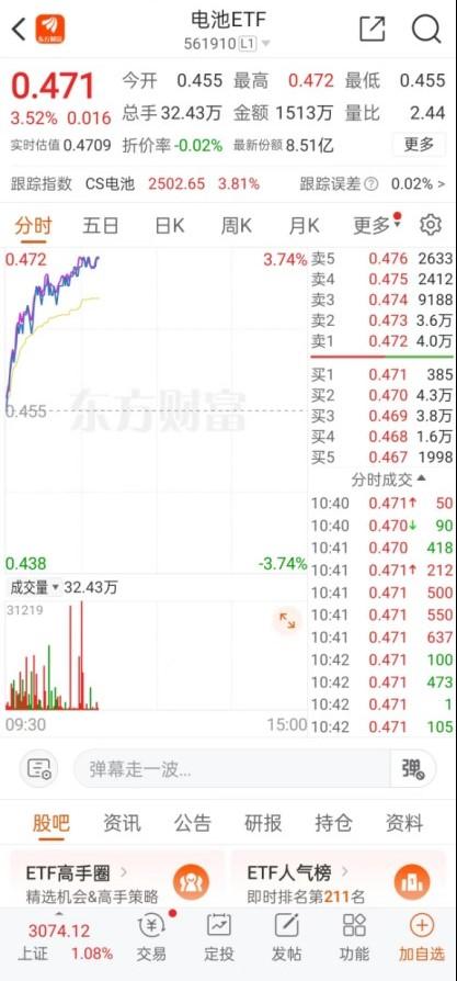 2024年4月1日早盤,三大指數集體高開,上周最后兩個交易日在小米汽車發售的驅動下電池板塊迎來連續反彈,今日依舊保持活躍,其中$電池ETF(SH561910)$截至目前大漲3.52%。