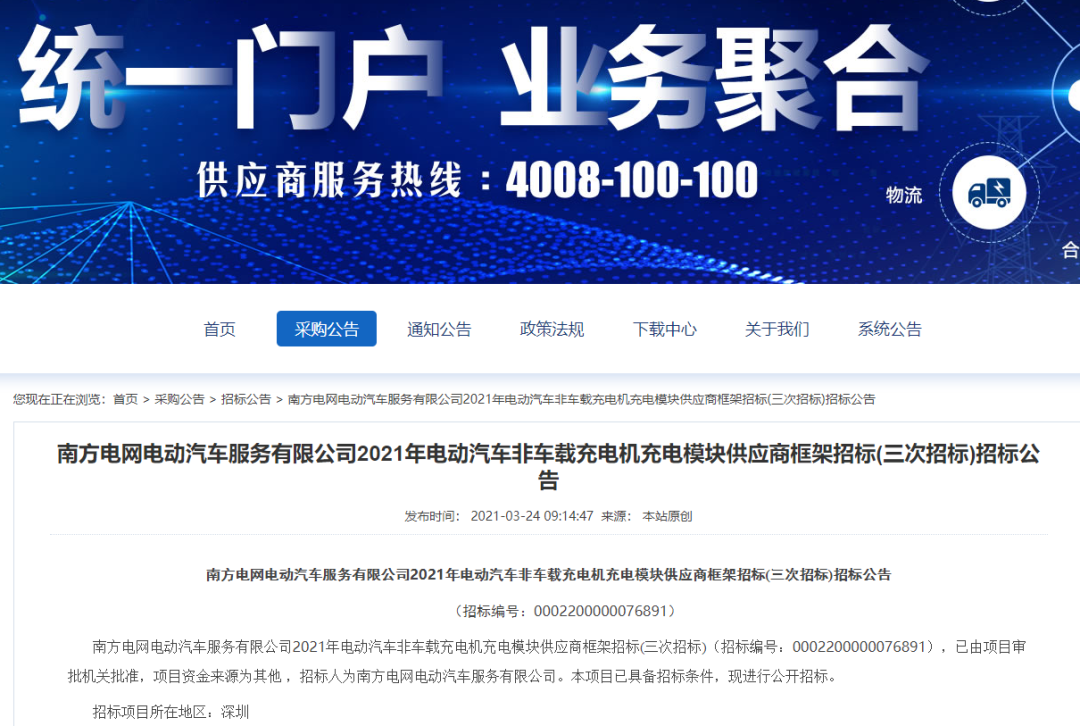 1.1. 項目名稱(cheng):南方電網電動汽車服務有(you)限公司(si)2021年(nian)電(dian)動汽車非車載充(chong)(chong)電(dian)機充(chong)(chong)電(dian)模塊供(gong)應商(shang)框架招標(三次招標)