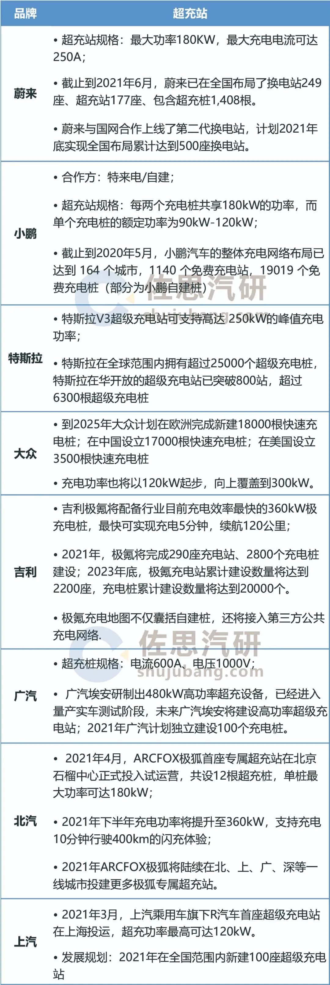 眾多主機廠也已意識到了封閉(或半封閉)充電網絡的重要性,包括特斯拉、蔚來、小鵬、理想等中高端初創品牌,以及傳統整車廠的純電動高端品牌,如吉利極氪、廣汽埃安、北汽ARCFOX極狐、上汽R汽車,大眾ID等,也紛紛開始或規劃在超充站上進行布局。