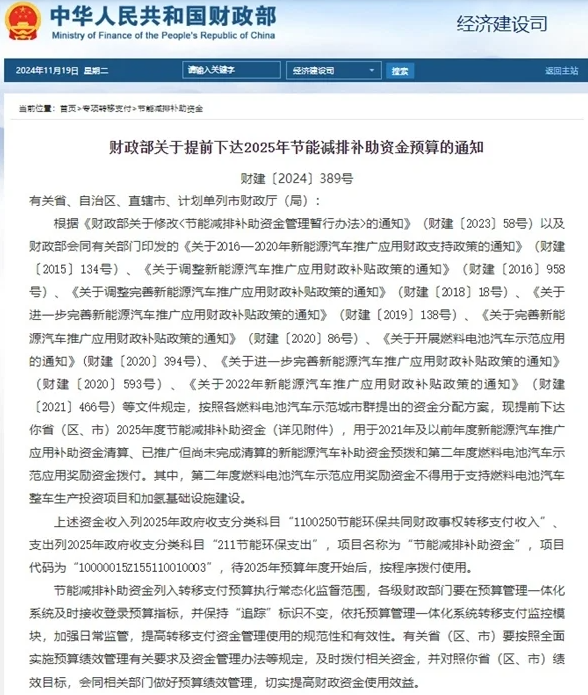 據報道(dao),財政部今日發布《關于提前下達2025年節能減(jian)排(pai)補助資(zi)金預算的通知》,詳細(xi)公布了汽車行業補貼(tie)的資(zi)金分(fen)配明細(xi)。