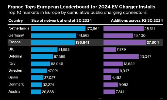 法(fa)國目前可供(gong)新(xin)能源(yuan)汽車司機使用的(de)充(chong)電樁數(shu)量接近137,000個,其中超過五分之一在(zai)2024年部署。推動這(zhe)一勢(shi)頭(tou)的(de)因(yin)素包括主要(yao)網(wang)絡(luo)的(de)擴張(包括法(fa)國電力集團EDF足(zu)跡幾(ji)乎翻一番),50多(duo)家新(xin)進入者推動競(jing)爭加劇,以及低(di)電價。