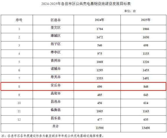 根據(ju)總(zong)體發展(zhan)目標,到2025年,濰坊(fang)市全市各類公共充電基(ji)礎設施達到13400臺(tai)。
