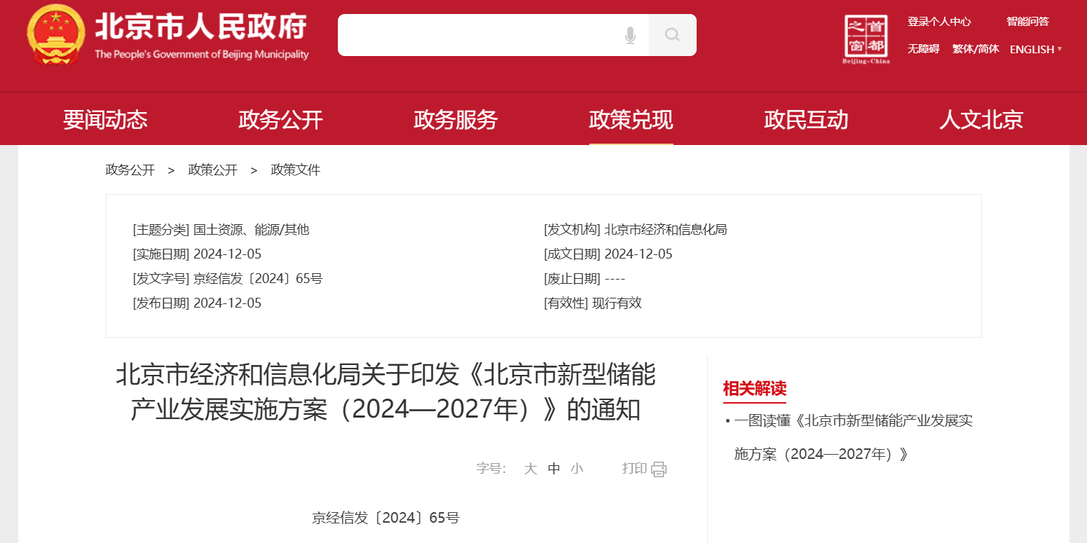 北京市經濟和信息化局關于印發《北京市新型儲能產業發展實施方案(2024—2027年)》的通知
