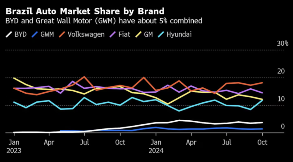 在歐美紛紛設置高額貿易壁壘的浪潮下,其他中國企業近期也宣布了拓展巴西市場的計劃。今年早些時候,拜登政府將進口自中國的電動汽車關稅從 25% 提高到 100%,聲稱是為了保護美國汽車產業免受其所稱的不公平貿易行為的影響。