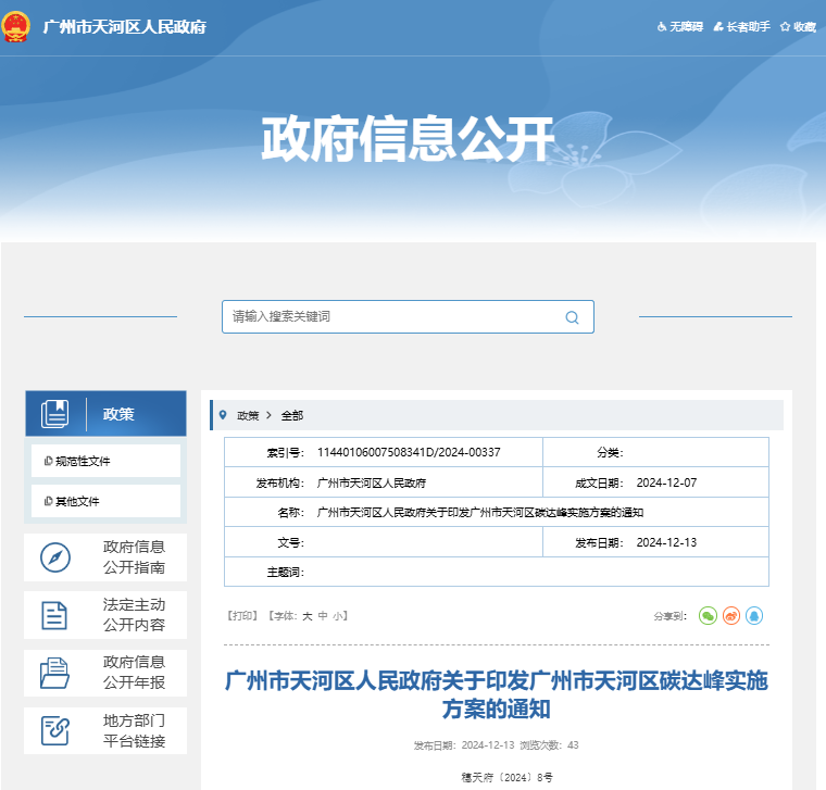 12月13日,廣(guang)州市(shi)天河(he)區人民政府關于印發(fa)《廣(guang)州市(shi)天河(he)區碳達峰(feng)實施方案》(以(yi)下簡稱《方案》)的通知。
