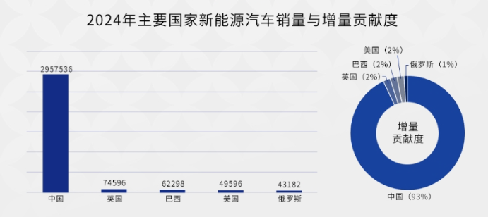“2024年中國新(xin)能(neng)源(yuan)乘用(yong)車(che)銷量(liang)對(dui)世界的(de)增(zeng)量(liang)貢(gong)獻(xian)度(du)是(shi)93%,英國、巴西、美國都是(shi)2%,俄羅斯1%,所以整個世界新(xin)能(neng)源(yuan)車(che)總(zong)體的(de)增(zeng)量(liang)貢(gong)獻(xian)基(ji)本就是(shi)在中國。”