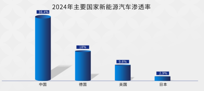 崔東樹提(ti)供的數據顯示,2024年(nian),中(zhong)國(guo)新(xin)能(neng)源汽(qi)車(che)滲透率達到38.4%,德國(guo)達到18%,美國(guo)僅有9.6%,日(ri)本(ben)僅有約(yue)3%。世(shi)界汽(qi)車(che)產業(ye)格局正發生變(bian)化。