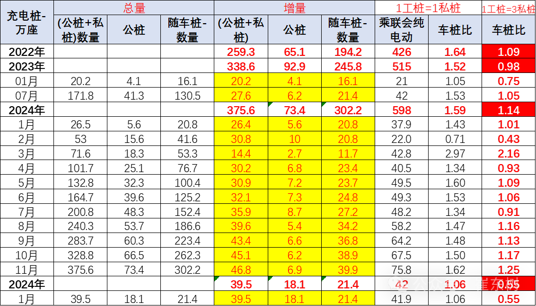 但如果細分功能看,按公樁的充電利用率是私樁的3倍,也就是3:1的關系,則充電設施與純電動的銷量占比達到0.55,基本是1:1的關系,由于公樁安裝暴增,總體車樁比的增量已經達到1:1的相對合理水平。