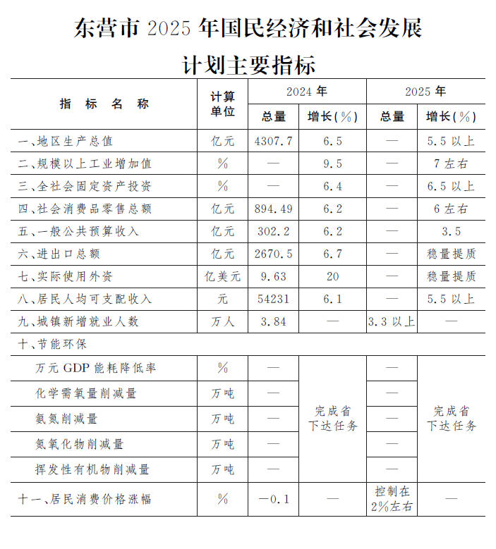 近日,東營市人民政府發布《關于印發東營市2025年國民經濟和社會發展計劃的通知》。
