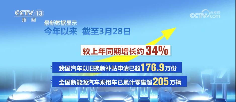 最新數據顯示,今年以來,截至3月28日我國汽車以舊換新補貼申請已超176.9萬份,全國新能源汽車乘用車已累計零售超205萬輛,較上年同期增長約34%。商務部相關負責人表示,未來將深入實施汽車以舊換新,適當加大換購新能源汽車的支持力度,釋放存量消費潛力。