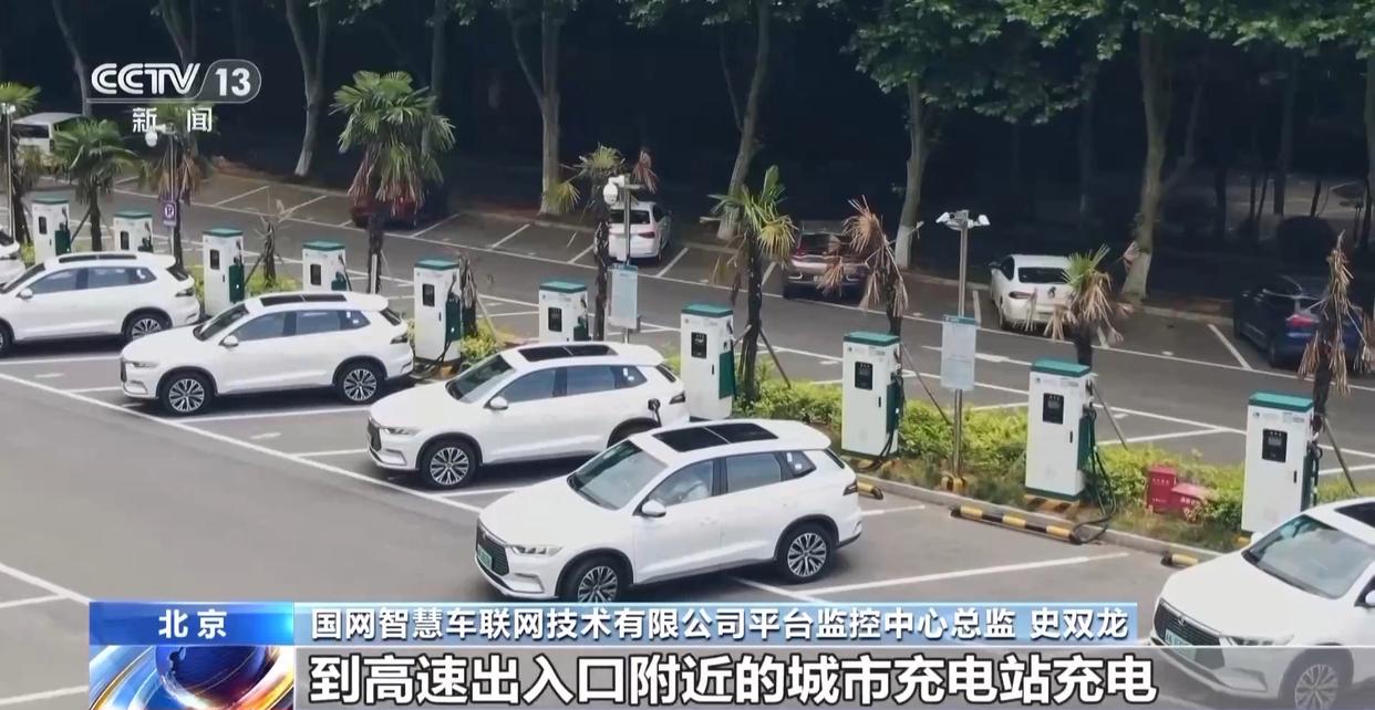 國網智慧車聯網技術有限公司平臺監控中心總監 史雙龍:4月28日至5月5日期間,我們每天通過“e充電”App向新能源汽車車主發放6萬張充電優惠券,以技術和經濟手段引導車主到高速出入口附近的城市充電站充電,減少車主等候時長,緩解高速服務區充電壓力。