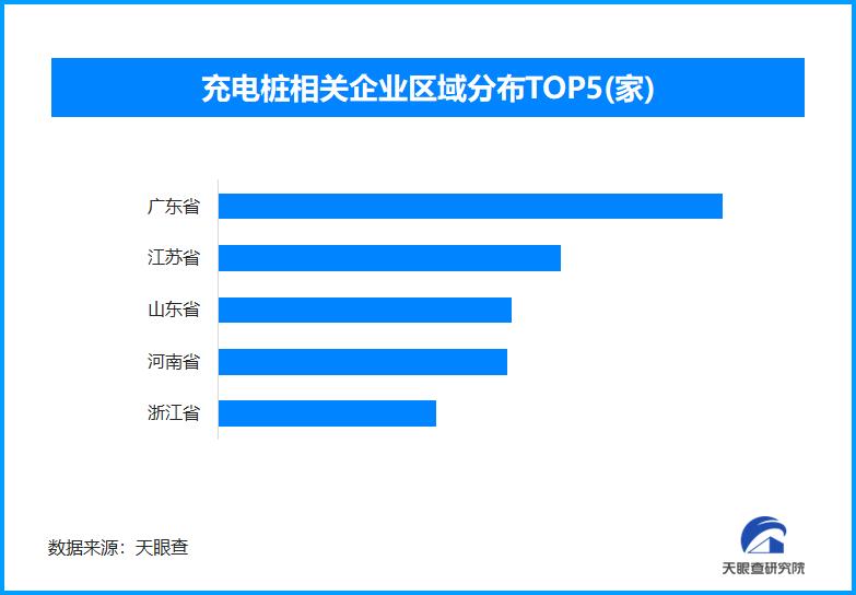 從區域分布來看,廣東省、江蘇省、山東省充電樁相關企業數量位居前列,分別為超過8.7萬余家、5.9萬余家和5.1萬余家。