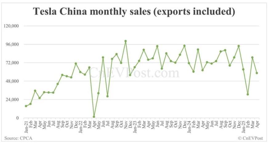 根據中國乘用車市場信息聯席會(CPCA)數據,特斯拉上月銷量為58,459輛(包括出口),同比下降5.96%,環比3月的78,828輛下降了25.84%。2024年1月至4月,特斯拉中國總銷量同比減少18.31%,降至231,213輛。