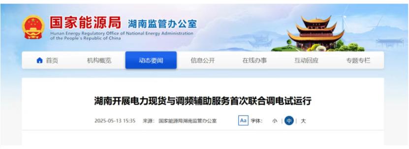 【湖南開展電力現貨與調頻輔助服務首次聯合調電試運行】