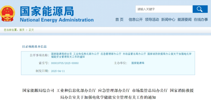 【重磅!五部門發布加強電化學儲能安全管理有關工作的通知】