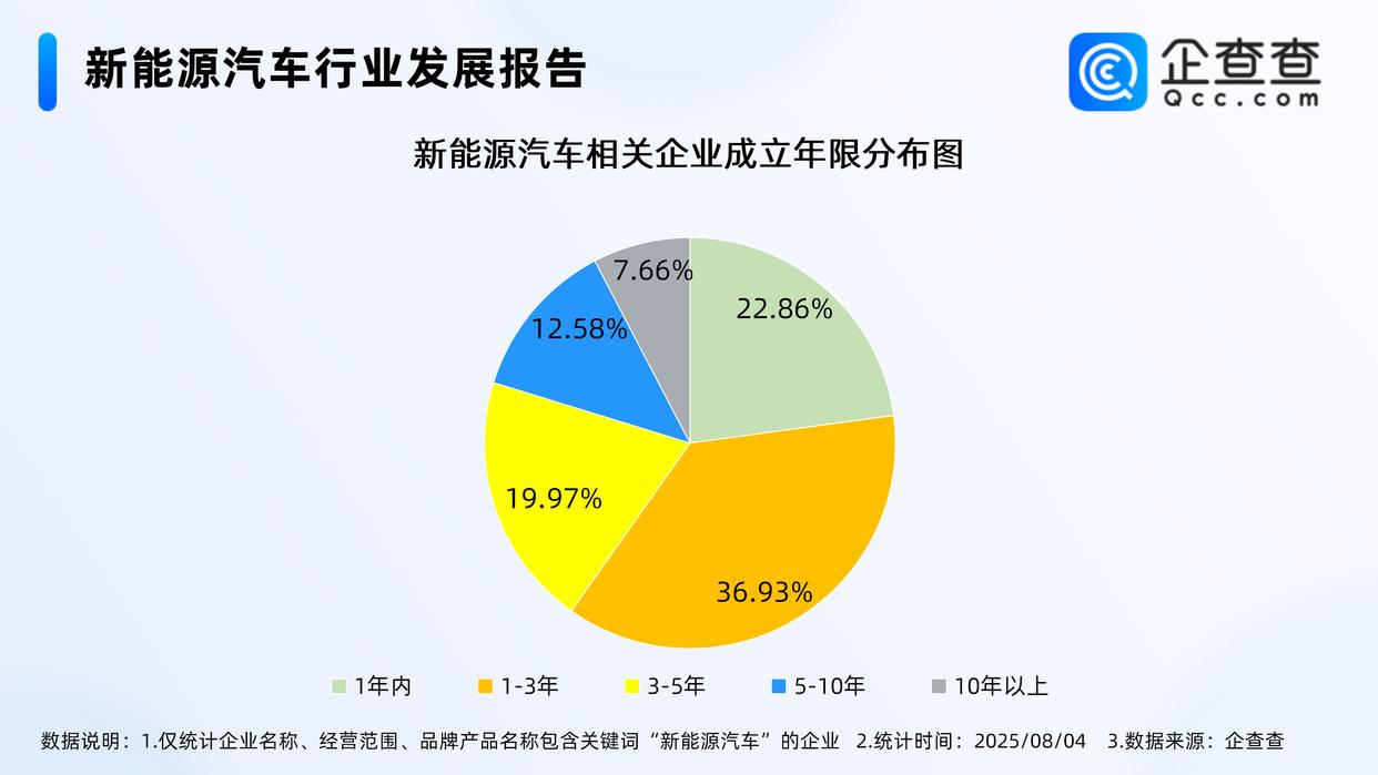 企查查數據顯示,截至8月初,國內現存新能源汽車相關企業135.64萬家。從經營時間來看,成立年限在1-3年的相關現存企業最多,占比36.93%。其次,成立年限在1年內、3-5年的相關現存企業分別占比22.86%、19.97%。注冊量方面,2024年全年注冊相關企業31.39萬家,截至目前,今年已注冊19.04萬家,其中前7月已注冊18.93萬家,同比增長5.17%。