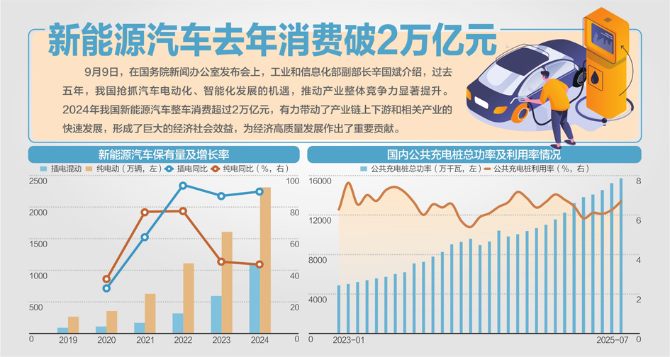 另一方面,過去5年,我國搶抓汽車電動化、智能化發展機遇,推動產業整體競爭力顯著提升。2024年我國新能源汽車整車消費超過2萬億元,有力帶動了產業鏈上下游和相關產業的快速發展,形成了巨大的經濟社會效益,為經濟高質量發展作出了重要貢獻。