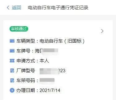 經審核通(tong)過后自動(dong)生成電動(dong)自行(xing)車電子通(tong)行(xing)憑證。