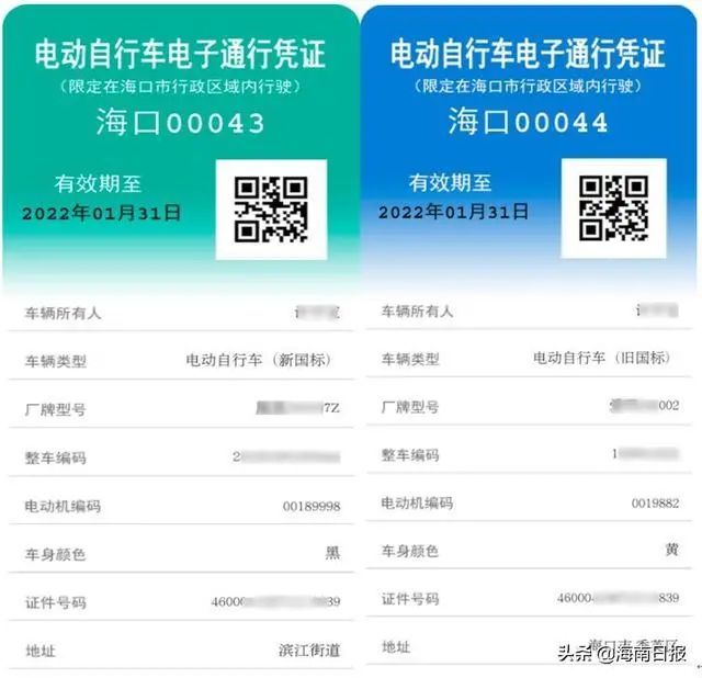 據(ju)介紹(shao),電(dian)動(dong)自(zi)行(xing)(xing)車(che)電(dian)子通行(xing)(xing)憑(ping)證不是正式電(dian)動(dong)自(zi)行(xing)(xing)車(che)號牌(pai)(pai)。在《海(hai)南省(sheng)電(dian)動(dong)自(zi)行(xing)(xing)車(che)管理(li)條(tiao)例》正式實(shi)施(shi)前發放電(dian)動(dong)自(zi)行(xing)(xing)車(che)電(dian)子通行(xing)(xing)憑(ping)證,是為了方(fang)便市民已購買的電(dian)動(dong)自(zi)行(xing)(xing)車(che)在海(hai)口轄(xia)區道(dao)路通行(xing)(xing)。待2022年(nian)1月1日實(shi)施(shi)全省(sheng)統一辦理(li)電(dian)動(dong)自(zi)行(xing)(xing)車(che)注(zhu)冊(ce)(ce)登記(ji)工作后,海(hai)口公(gong)安交警(jing)將(jiang)分批(pi)次公(gong)布辦理(li)電(dian)動(dong)自(zi)行(xing)(xing)車(che)注(zhu)冊(ce)(ce)登記(ji)工作具體(ti)措施(shi),發放正式電(dian)動(dong)自(zi)行(xing)(xing)車(che)號牌(pai)(pai)或(huo)過(guo)渡期(qi)臨時號牌(pai)(pai)。