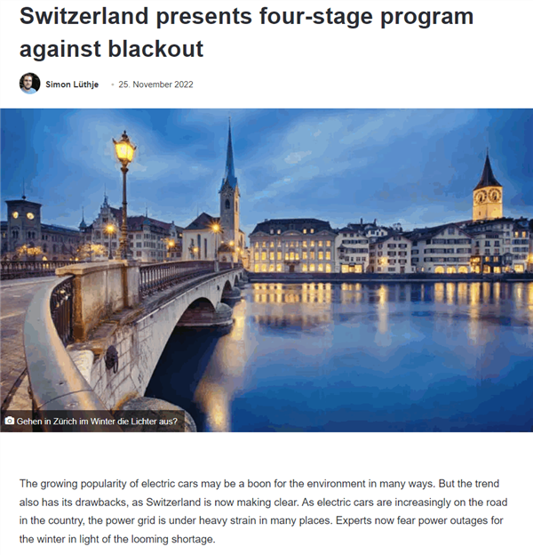 然而,由于今年冬天這兩個國家在安全供電上的不確定性因素:法國多個核電站關閉、德國風能和太陽能的不可預測、冬季的太陽能產量差以及嚴重的天然氣短缺,讓很多瑞士人對缺電的恐懼也與日俱增。