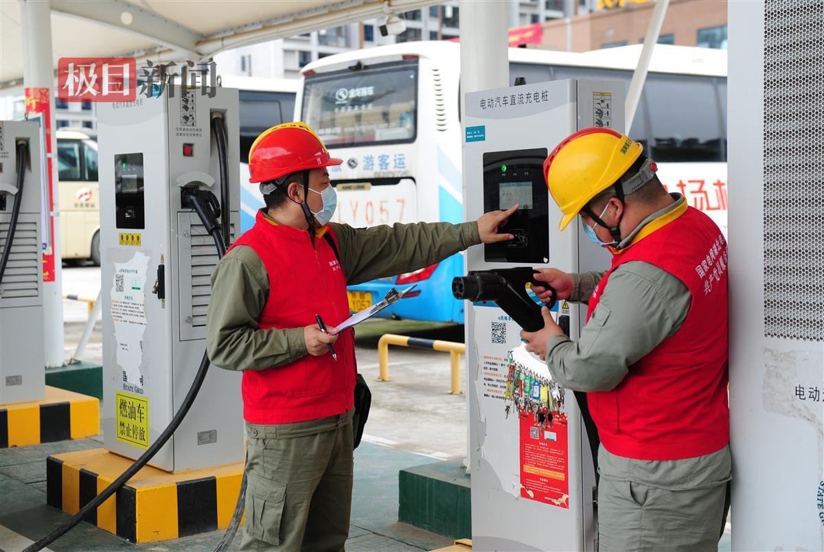 國(guo)網湖北(bei)電力工作(zuo)人員(yuan)在(zai)充電站(zhan)進行檢查