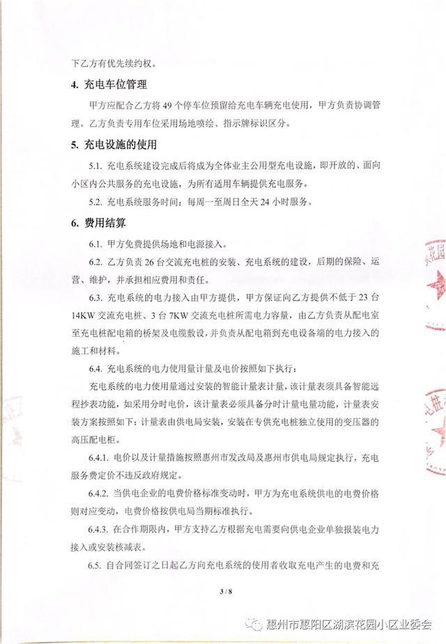 由于乙方公司是第一次與業主大會合作運營充電樁項目,且也是該公司在惠州市場落地的首個項目,加上政府和供電所方面也是首次遇到小區業主大會直接和第三方機構簽訂汽車充電樁運營項目合作協議的情況,在建設申報流程和資料提供方面,大家都不太了解情況,因此,在“摸著石頭過河”的過程中業委會會全程盡全力去支持和配合乙方公司推進該項目的建設。