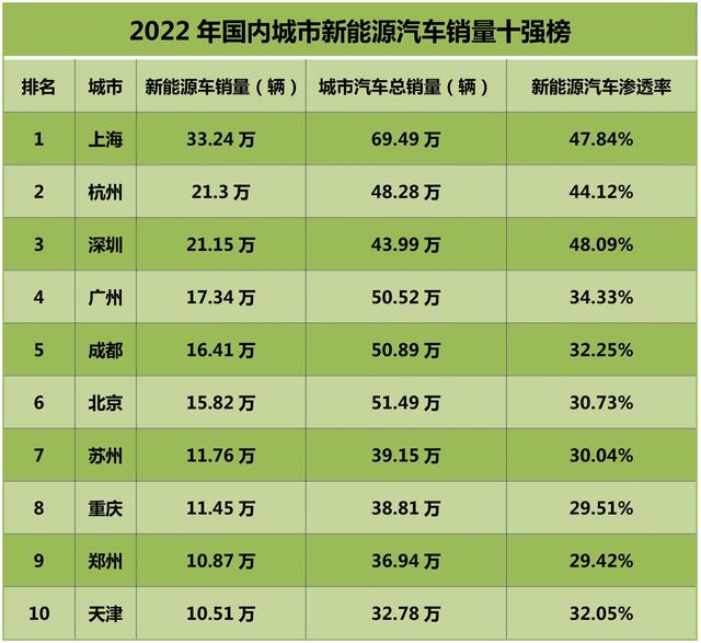 當(dang)然從滲(shen)透率(lv)(lv)(lv)的(de)角度(du)來(lai)說,新(xin)(xin)能源(yuan)汽車(che)銷量(liang)位于(yu)前十的(de)城市,新(xin)(xin)能源(yuan)汽車(che)的(de)整體滲(shen)透率(lv)(lv)(lv)自然也不低,其中深圳、上(shang)海、杭州的(de)新(xin)(xin)能源(yuan)汽車(che)滲(shen)透率(lv)(lv)(lv)分(fen)別達(da)到了(le)48.09%、47.84%和(he)44.12%,相(xiang)當(dang)于(yu)這三個城市的(de)新(xin)(xin)能源(yuan)汽車(che)滲(shen)透率(lv)(lv)(lv),即將超過50%。接近50%的(de)滲(shen)透率(lv)(lv)(lv),可見這些城市的(de)消費者,對于(yu)新(xin)(xin)能源(yuan)汽車(che)的(de)認(ren)可度(du)和(he)接受度(du)有(you)多高(gao)了(le)。