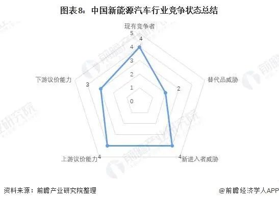 從五力競爭模型角度分析,由于新能源汽車屬于技術密集型產品,電池、動力系統等技術的成熟與否直接決定一輛新能源汽車的質量,因此,各個車企都在針對新能源的電池等領域進行研發,以達到搶占市場的目的,新能源汽車的現有競爭者競爭較為激烈。