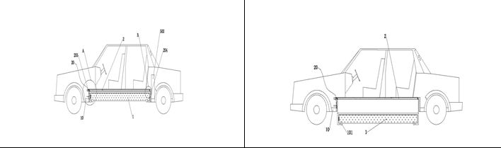 每輛純電動車車輛底盤裝一個升降裝置,當裝置將動力電池(充電寶)降到與地面接觸后 ,就可以開始充電寶裝卸操作了。