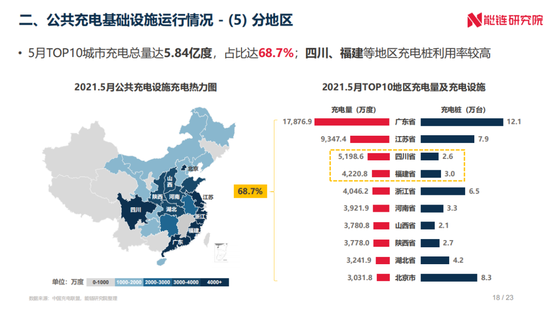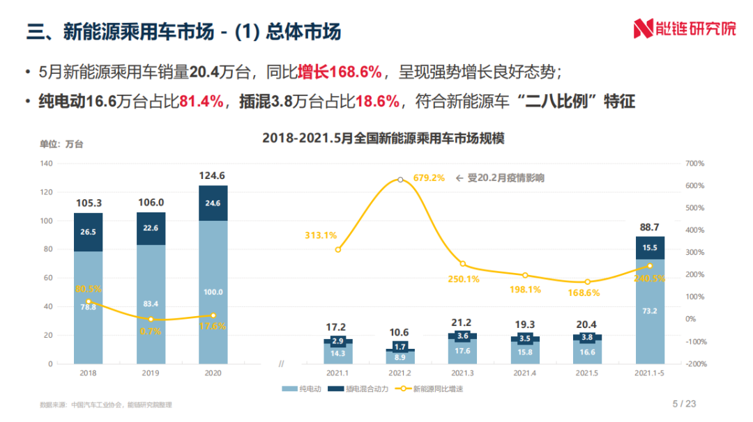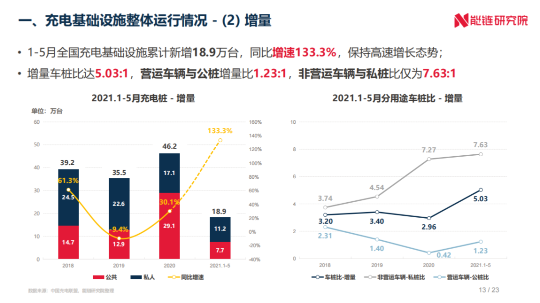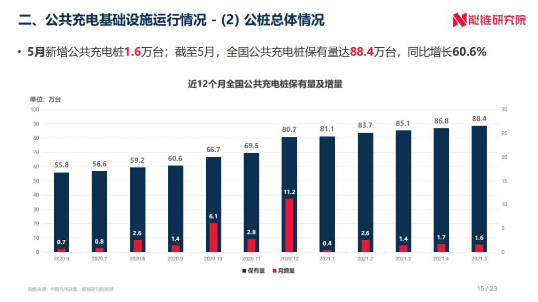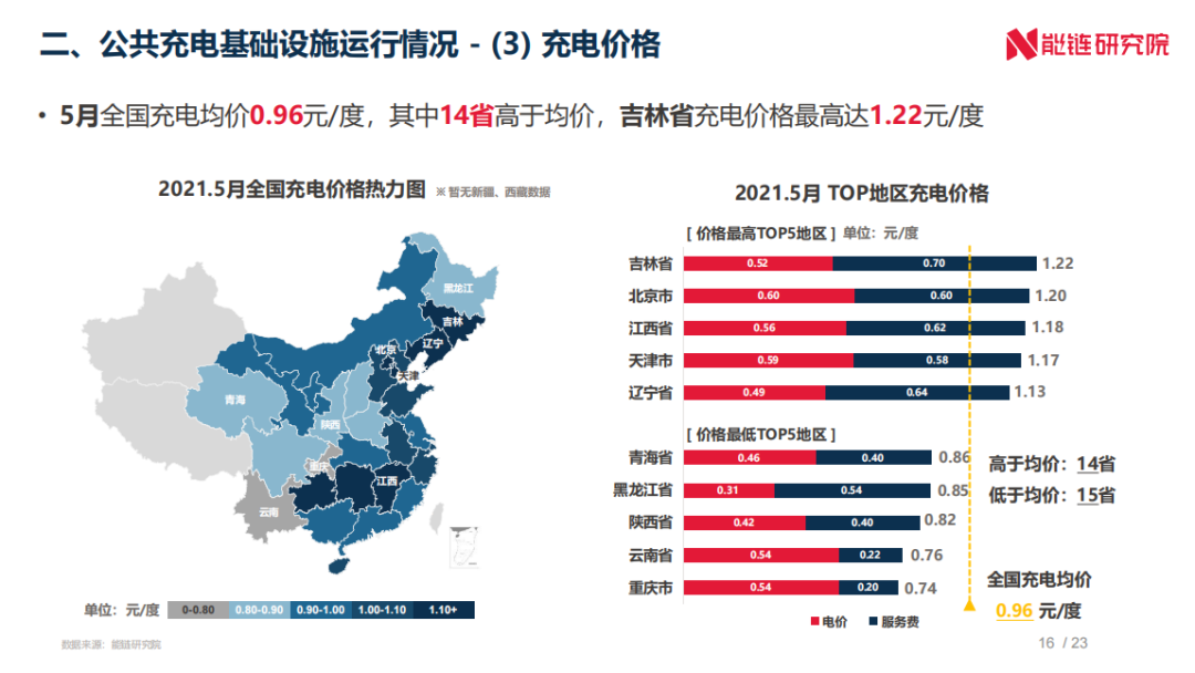 能鏈研究院發布《2021年5月新能源交通領域運行報告》,內容涵蓋全國新能源汽車市場及充換電基礎設施兩部分,監測月度新能源汽車市場、新能源汽車行使里程、充換電基礎設施建設、充電價格指數等多維度運行數據。