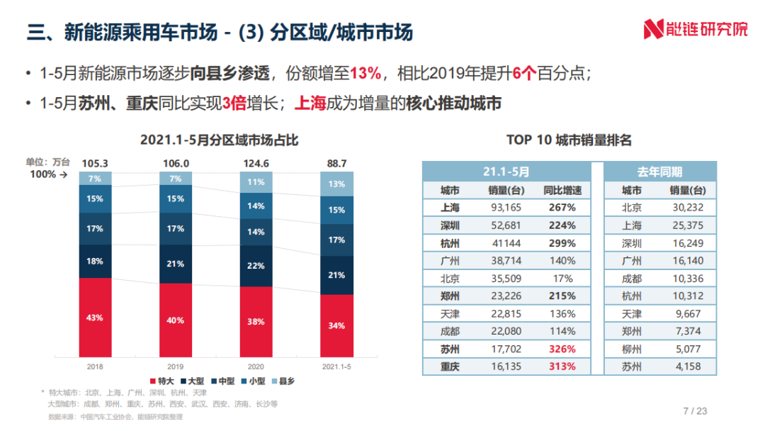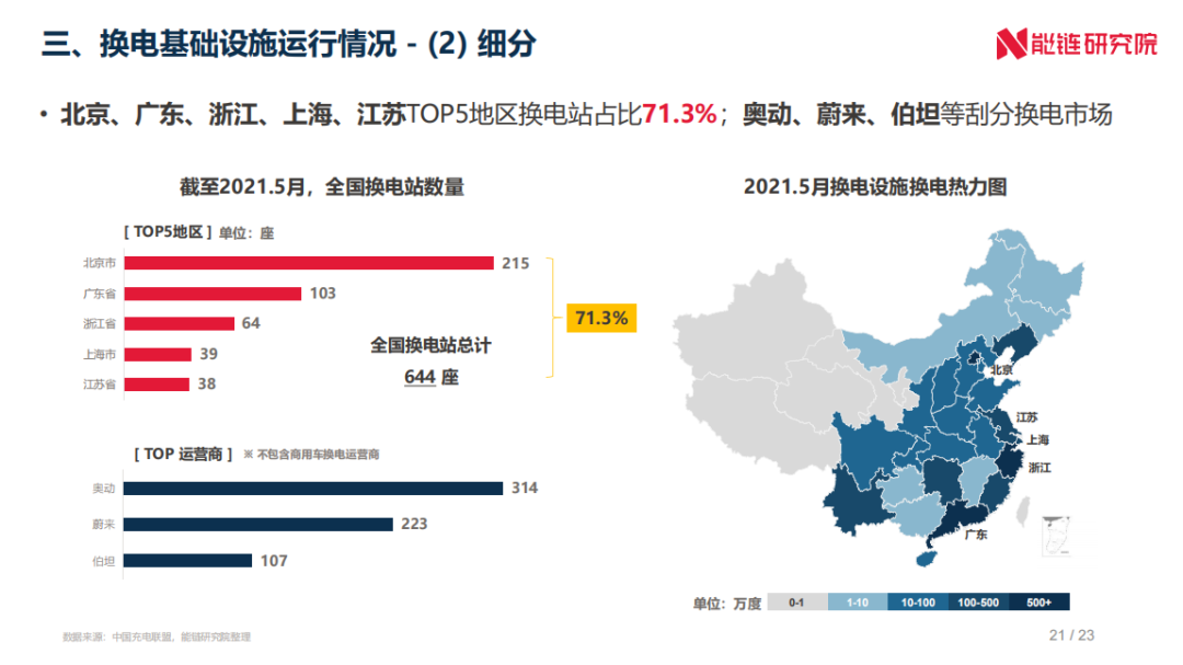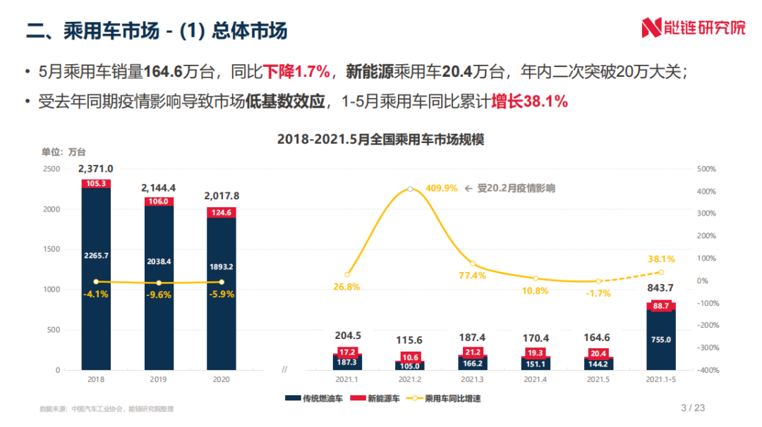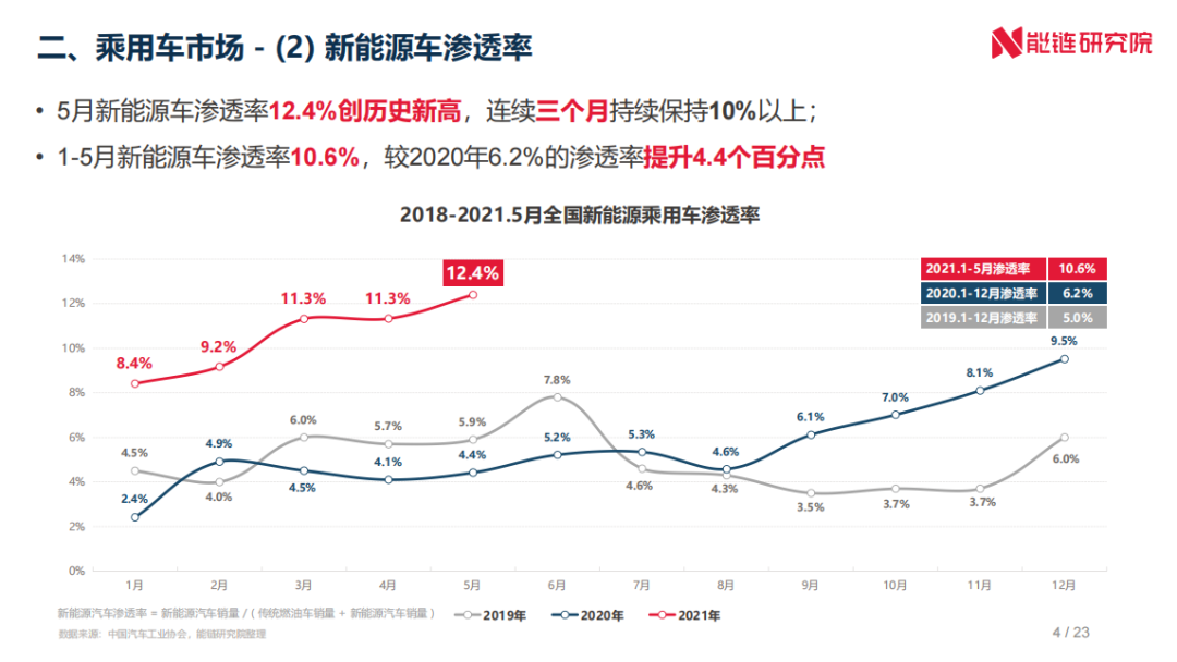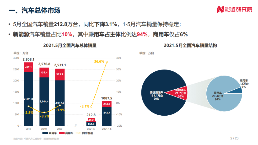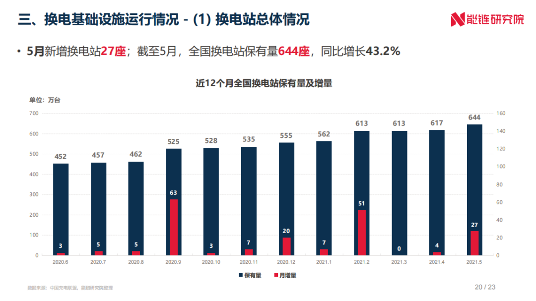 能鏈研究院發布《2021年5月新能源交通領域運行報告》,內容涵蓋全國新能源汽車市場及充換電基礎設施兩部分,監測月度新能源汽車市場、新能源汽車行使里程、充換電基礎設施建設、充電價格指數等多維度運行數據。