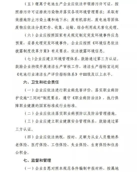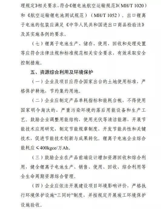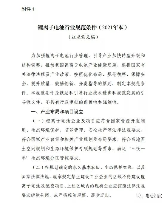 其(qi)中《鋰離子電(dian)池行(xing)業規(gui)(gui)范(fan)條件(jian)(2021年本(ben))》(征(zheng)求(qiu)意見稿)提出(chu),鋰離子電(dian)池企業及(ji)項目(mu)應符合國(guo)(guo)家資源開發利用、生態(tai)(tai)環(huan)(huan)境(jing)保護、節能管理、安全(quan)生產(chan)等法(fa)律法(fa)規(gui)(gui)要求(qiu),符合國(guo)(guo)家產(chan)業政策(ce)和相(xiang)關產(chan)業規(gui)(gui)劃(hua)及(ji)布局要求(qiu),符合當地國(guo)(guo)土空間規(gui)(gui)劃(hua)和生態(tai)(tai)環(huan)(huan)境(jing)保護專項規(gui)(gui)劃(hua)等要求(qiu),滿足‘三線一單’生態(tai)(tai)環(huan)(huan)境(jing)分區管控(kong)要求(qiu)。