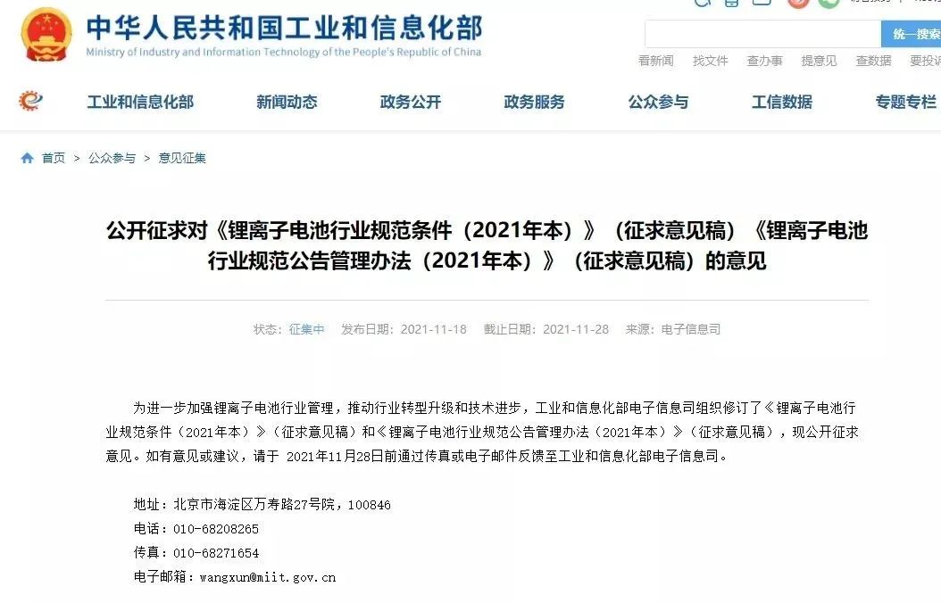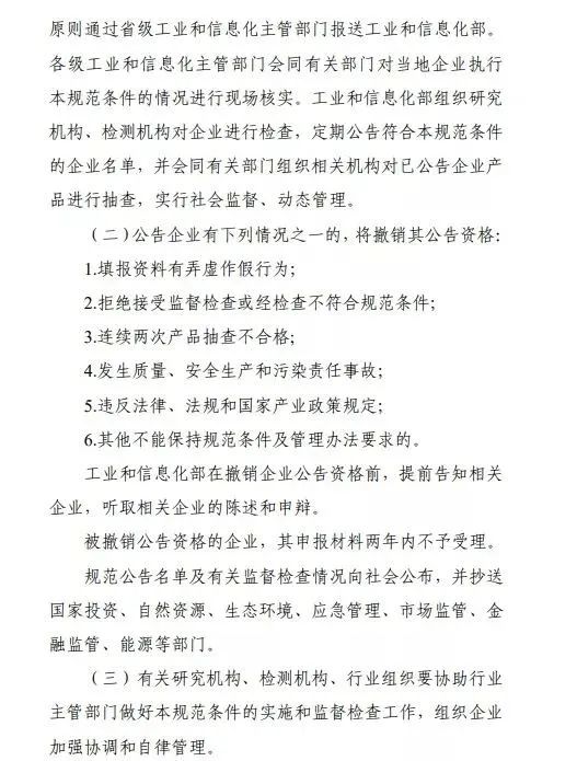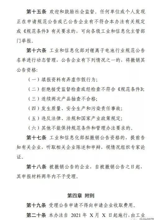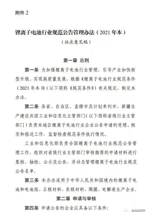 《鋰離子電池行業規范公告管理辦法(2021年本)》